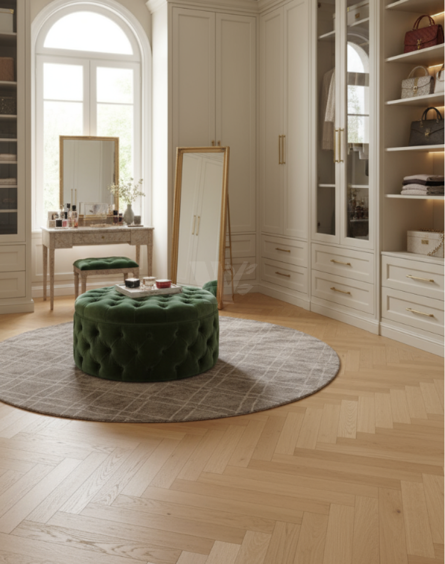 You can arrange the planks in both herringbone and traditional brick layouts.