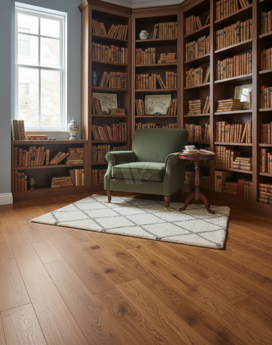 The boards are treated with a Cognac-toned UV-hardened oil to ensure lasting beauty and strength.