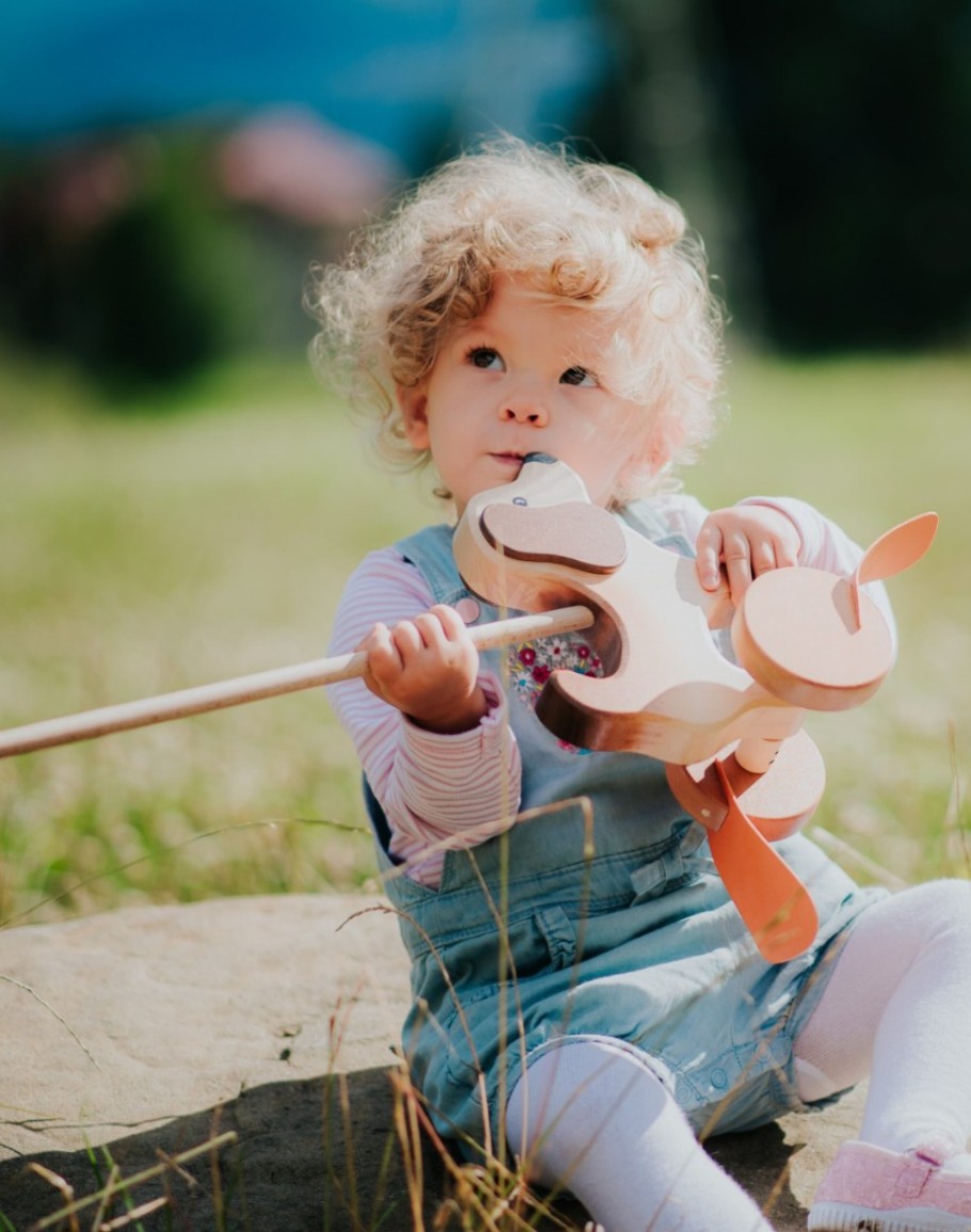 “Dogs may not be our whole life, but they make our lives whole.” This charming hand-painted wooden puppy is a perfect companion for toddlers learning to walk. As children push it along, the puppy’s paws make a playful clicking sound that kids find endlessly amusing. A fun toy that supports motor development and first steps.